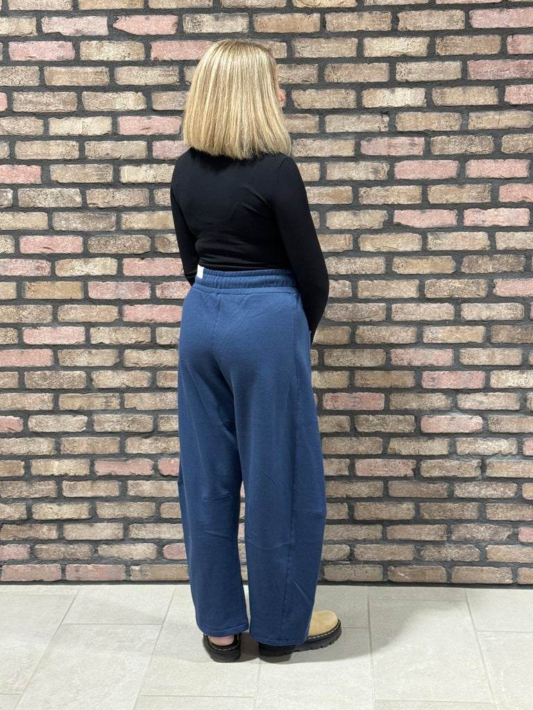Fleece baggy barrel leg sweatpants with elastic waistband, side pockets and adjustable drawstring