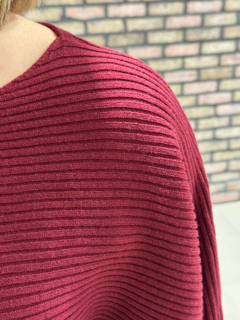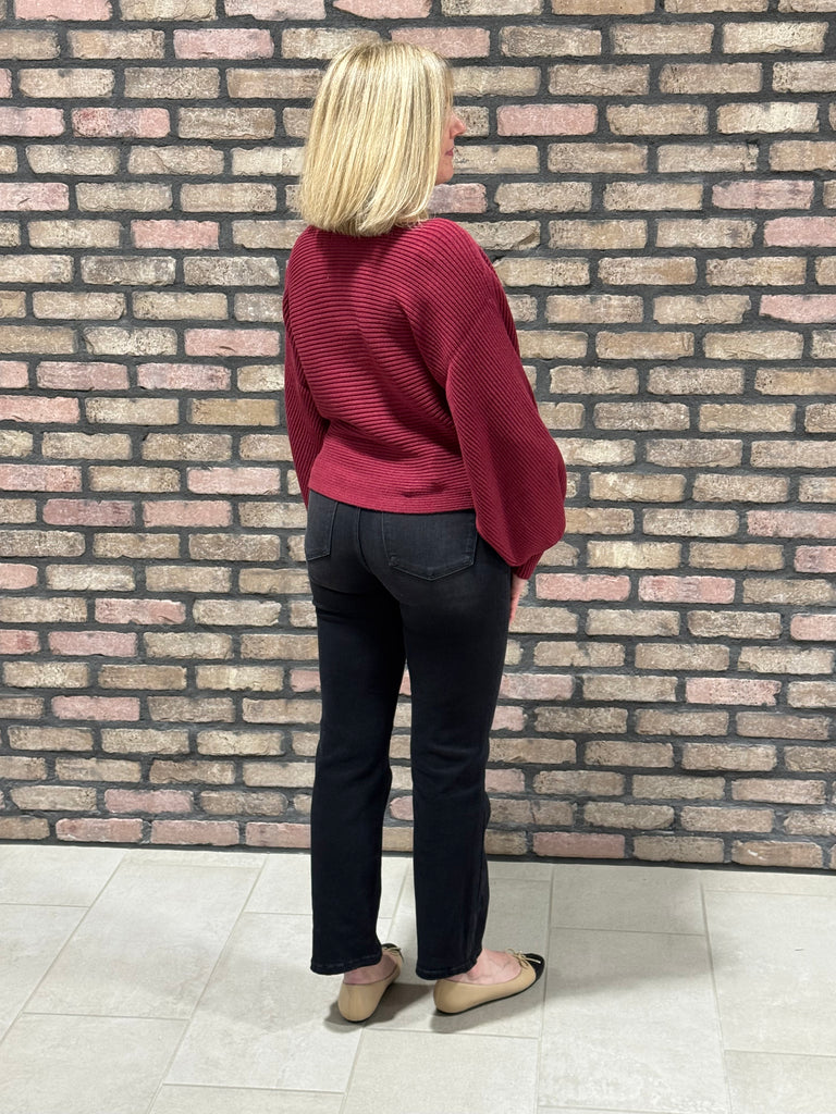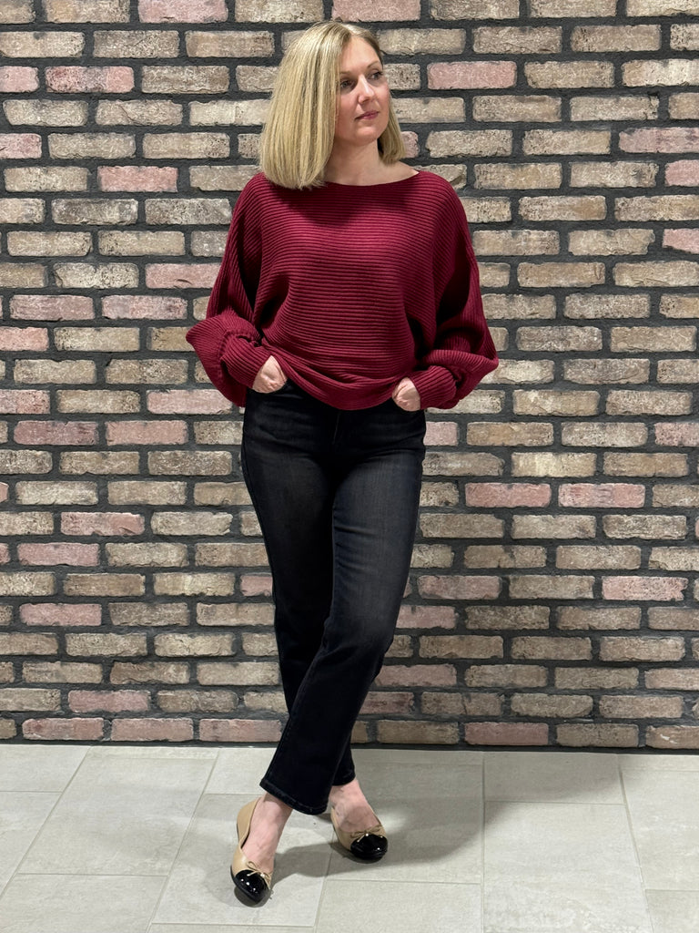 Boat Neck Balloon Sleeves Sweater - Cabernet