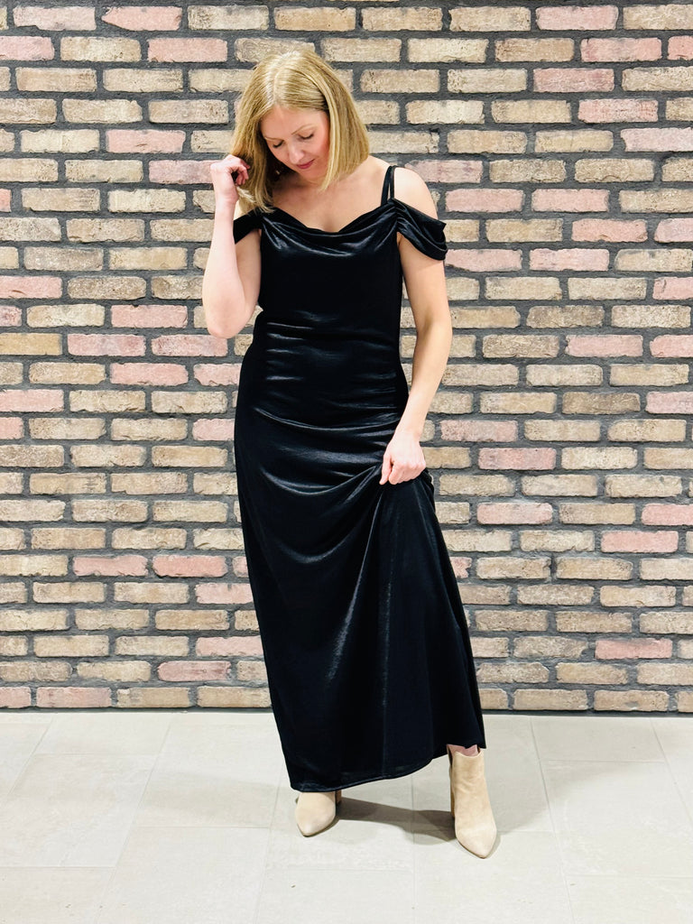 Cowl Neck Strap Maxi Dress - Black