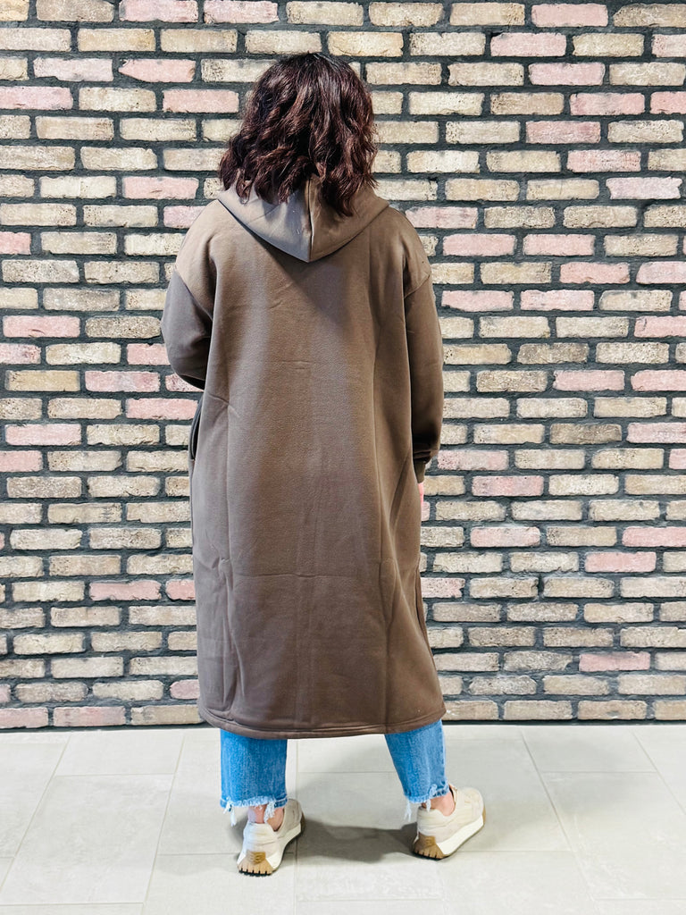 Fleece Hooded Coat - Brown