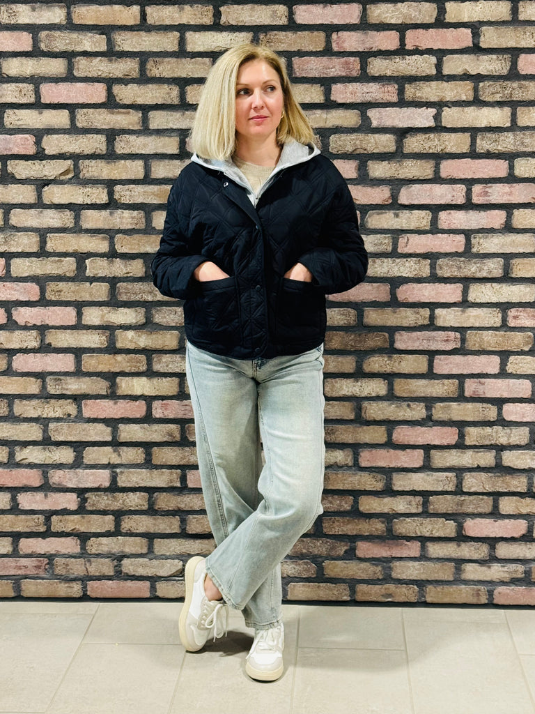 Hooded Contrast Jacket - Black
