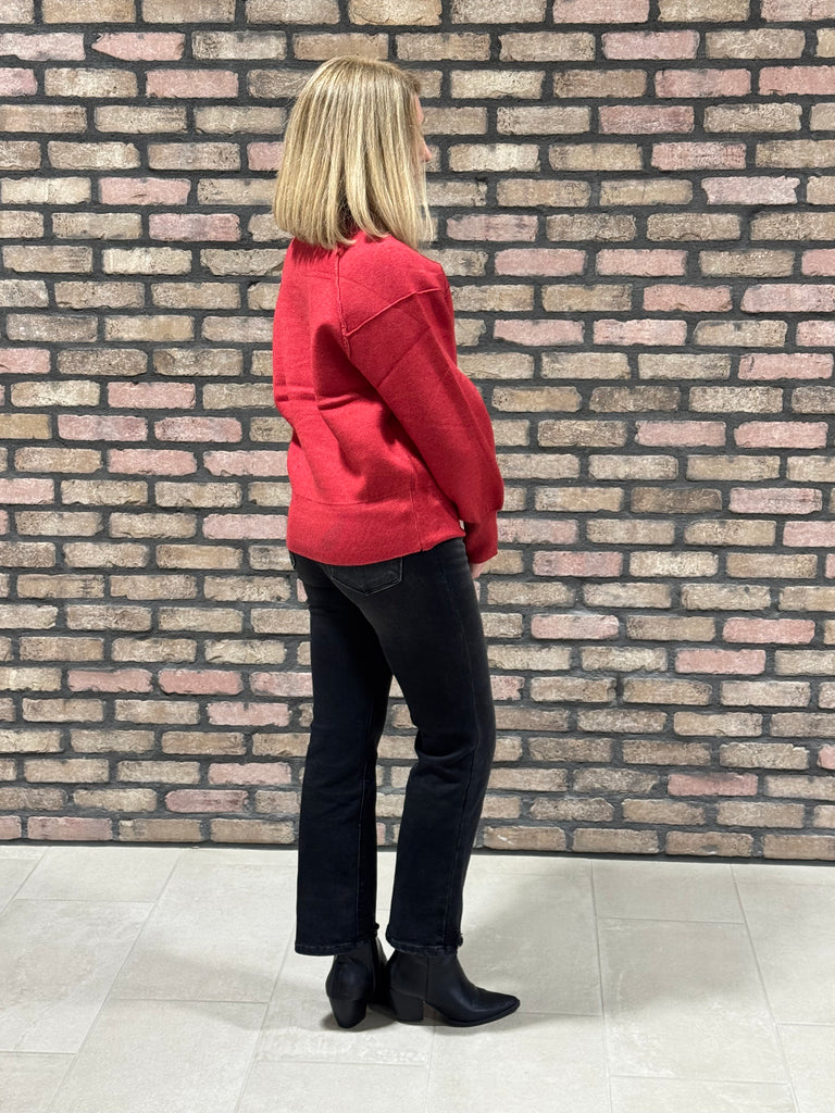 Mock Neck Exposed Seam Sweater - H Red