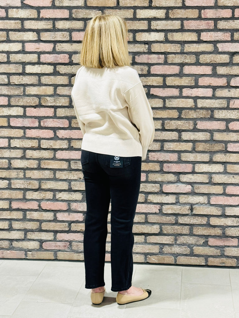 Mock Neck Exposed Seam Sweater - Sand Beige