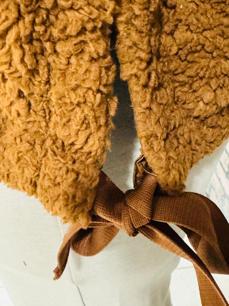 Oversized faux fur vest with pockets and side ties