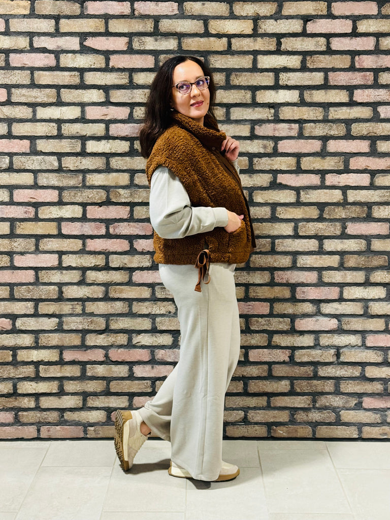 Oversized Faux Fur Vest - Brown