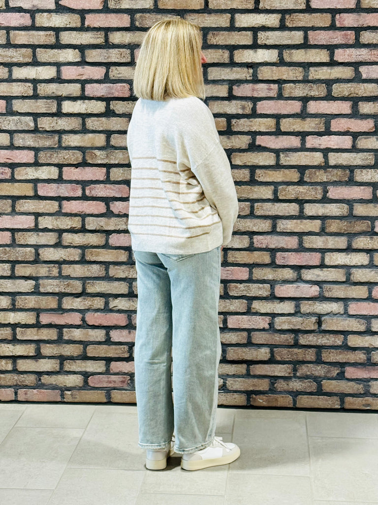 Striped Front Seam Sweater - Khaki