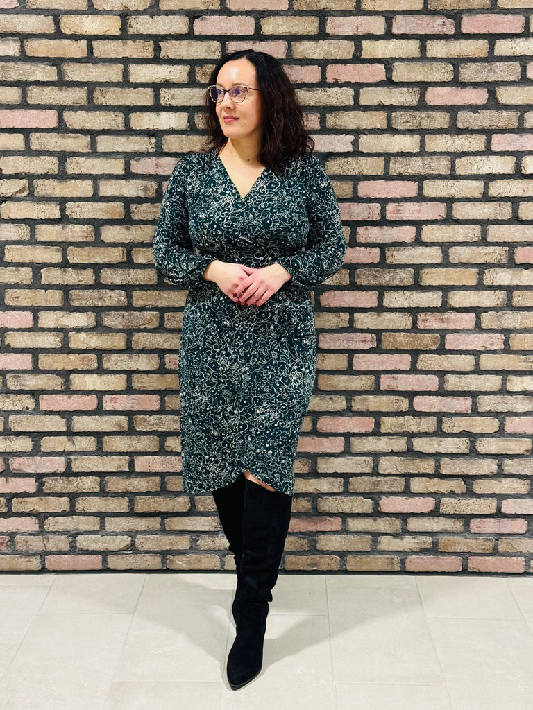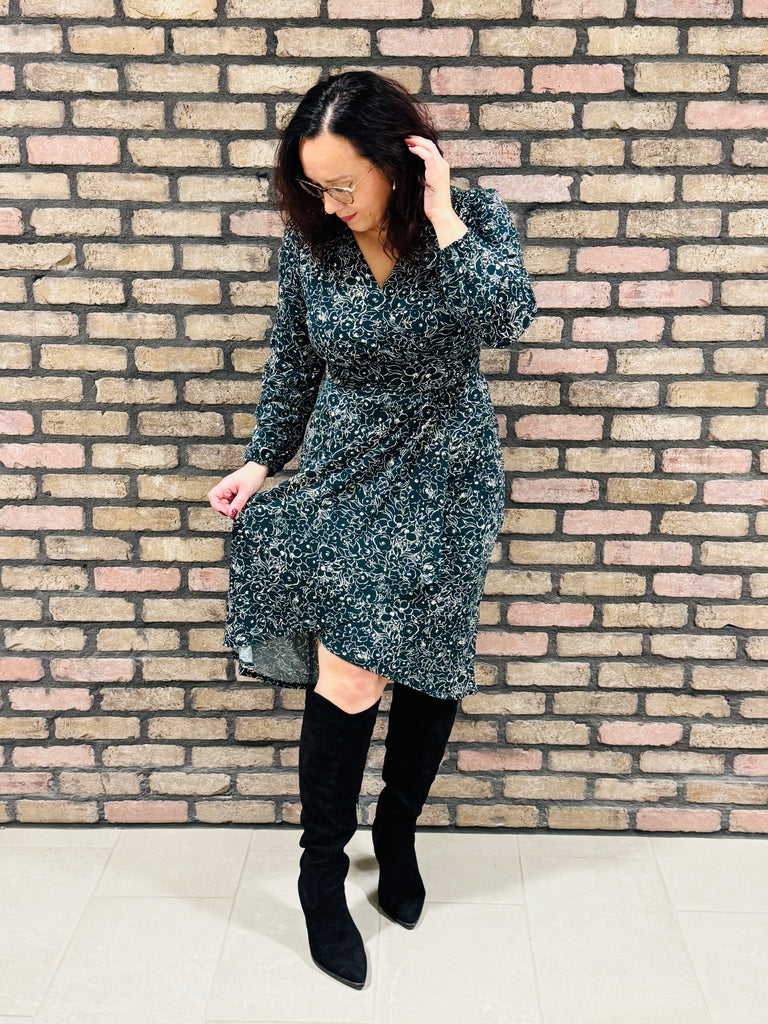Surplice Floral Dress - Hunter Green