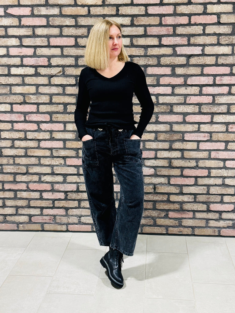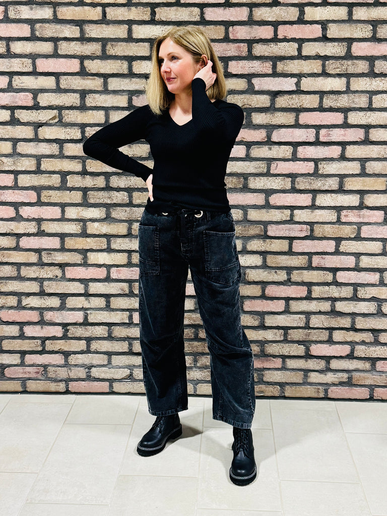 Long sleeves V-neck fitted viscose ribbed sweater top